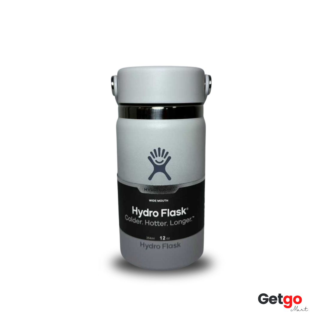 Designed for hot drinks, the Hydro Flask Wide Mouth 355 ml (12 oz) bottle with Flex Sip Lid™ is leak-proof and cup holder compatible. This insulated stainless steel bottle is ideal for coffee, tea, or your favorite beverage; it keeps hot drinks hot and cold drinks cold.