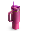 This travel tumbler is just what you need for all-day hydration. Take it with you to a high-intensity workout or on an extra-long commute to keep your drink cold for hours. The lid features a rotating cover with three positions: a straw opening, a wide mouth for drinking, and a full-cover top to prevent spills. The larger size even fits comfortably in your vehicle’s cup holder and comes with a rugged handle for carrying.